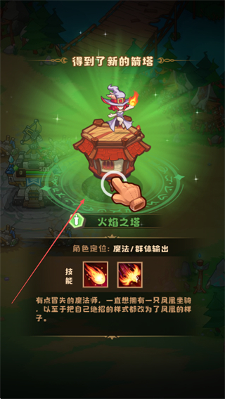 3、解鎖新箭塔如火焰之塔,點(diǎn)擊塔進(jìn)行升級(jí),提升群體/群帥輸出能力。