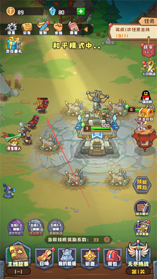 4、布置多種防御塔,利用主線故事、召喚等功能強(qiáng)化防御,在和平模式中積累資源,持續(xù)抵御敵人。