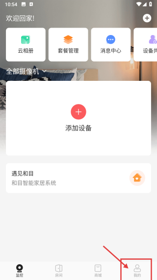 1、打開智能家居類APP首頁,點擊底部我的選項,進入個人中心頁面。