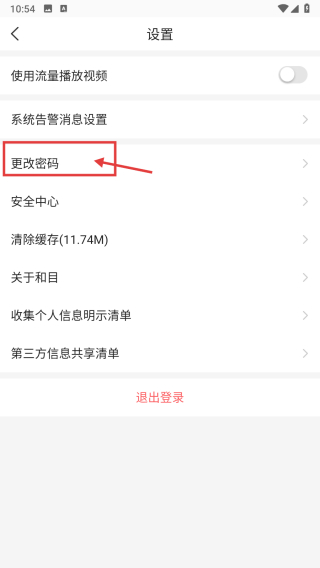3、在設置頁面,點擊更改密碼選項,進入密碼修改頁面。