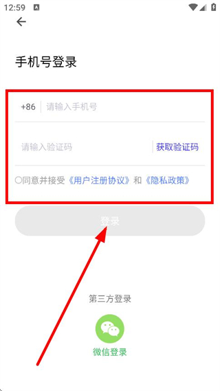 4、輸入手機(jī)號(hào),獲取驗(yàn)證碼并輸入,點(diǎn)擊登錄,完成賬號(hào)登錄操作。