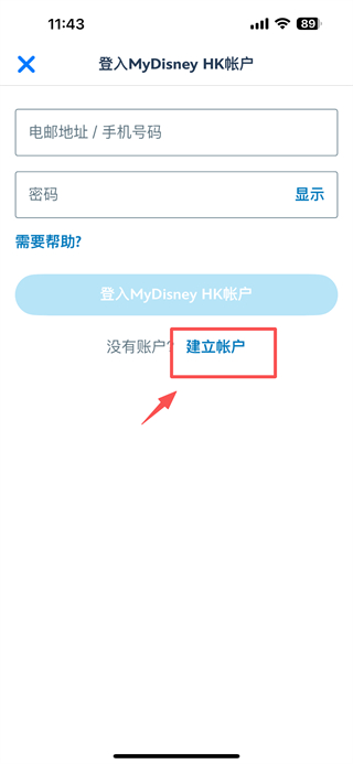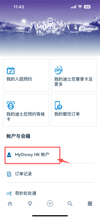 2、在菜單頁面,點(diǎn)擊MyDisney-HK-帳戶選項(xiàng),進(jìn)入登錄頁面。