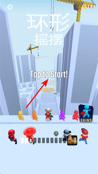 1、在游戲中,點(diǎn)擊Tap to Start按鈕開啟環(huán)形搖擺挑戰(zhàn),這是進(jìn)入游戲競技的關(guān)鍵操作,點(diǎn)擊操控角色參與城市間競速冒險(xiǎn)。