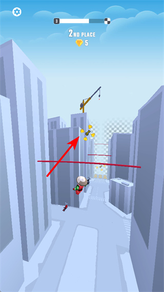 每一關(guān)的核心目標(biāo)是用最快速度完成飛行與跑酷,以“第一個(gè)抵達(dá)終點(diǎn)”為終極追求,通過優(yōu)化搖擺節(jié)奏、合理使用道具,提升通關(guān)速度,感受競速帶來緊張刺激。