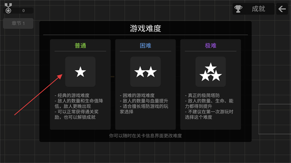 2、進入關卡后,可以選擇關卡的游戲難度,新手建議選擇普通模式。