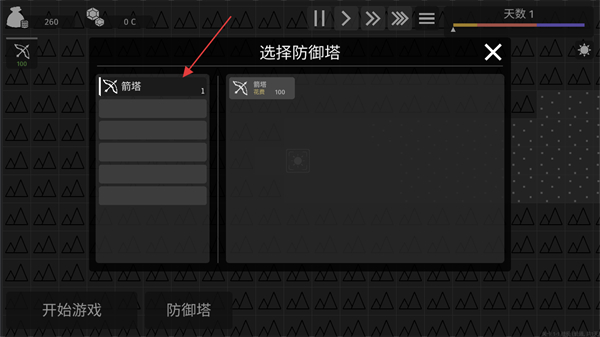 4、點擊箭塔進行裝備,注意箭塔搭建時會花費100塊金錢。