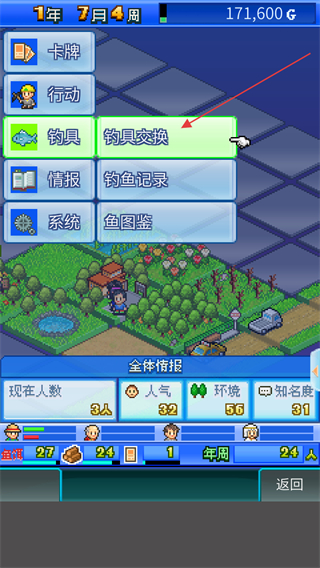 4、在游戲菜單頁面的釣具菜單中可以點擊釣具交換,進(jìn)行購買新的釣具。