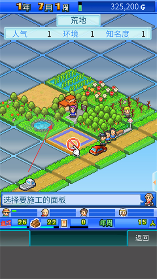 4、點擊改良施工可以對已經(jīng)使用過卡牌的土地進行改造研究工作,增長人氣值和環(huán)境分?jǐn)?shù)。