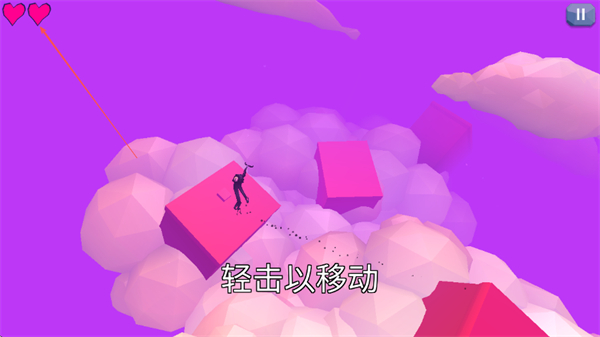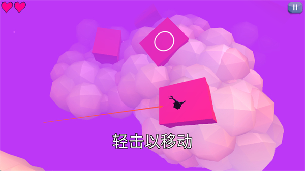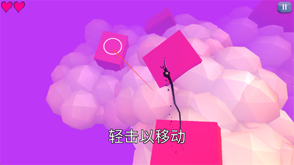 1、輕擊屏幕控制觸須精靈在粉色方塊間移動,移動時需注意方塊的位置和距離,避免掉落。