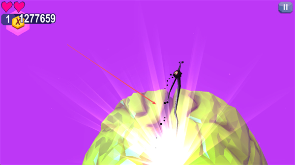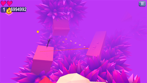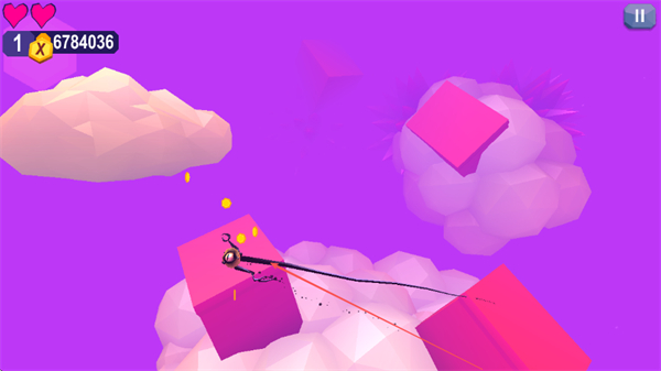 1、輕擊屏幕控制觸須精靈在粉色方塊間移動(dòng),收集金幣積累分?jǐn)?shù)。