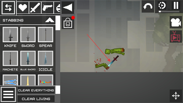 3、拖動游戲頁面內(nèi)的武器可以進(jìn)行攻擊揮砍等操作,錄制人物的死亡畫面。