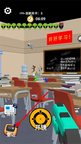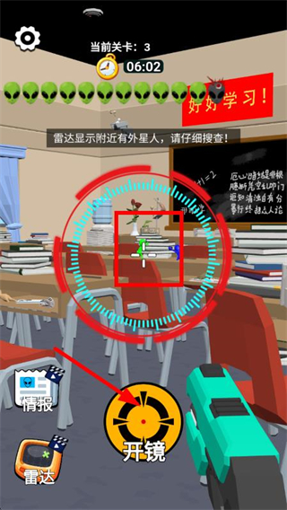 3、可以使用雷達(dá)道具掃描外星人位置,結(jié)合情報(bào)提示精準(zhǔn)鎖定目標(biāo)。