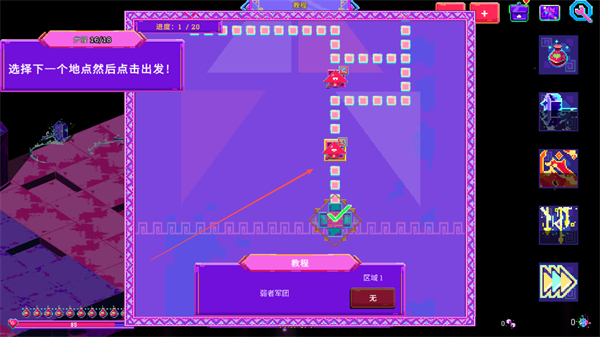 1、在地圖界面選擇下一個(gè)地點(diǎn),點(diǎn)擊出發(fā),前往新區(qū)域探索。