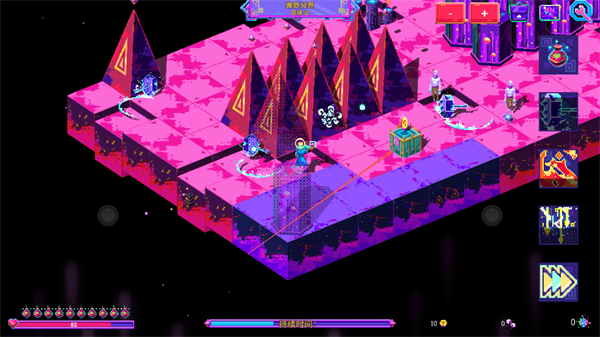 3、在新區(qū)域中探索,與敵人戰(zhàn)斗,注意躲避攻擊,同時(shí)尋找資源和寶箱。
