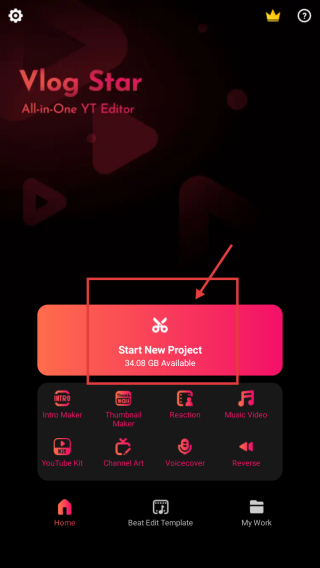 1、打開視頻編輯類APP,點擊Start-New-Project按鈕,進入視頻素材選擇頁面。