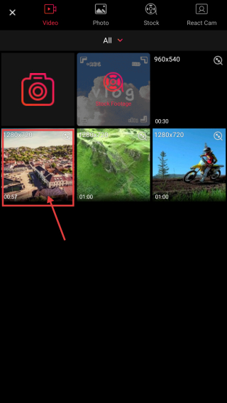 2、在視頻素材選擇頁面,選擇要編輯的視頻素材。