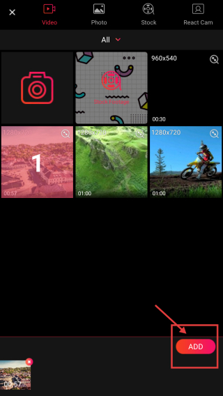 3、點擊ADD按鈕,將選中的視頻素材添加到編輯軌道。