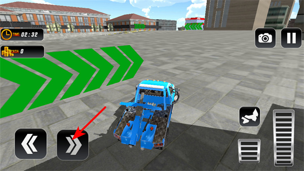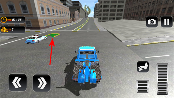 4、緊跟紅色箭頭指引,朝著標(biāo)有綠色區(qū)域的目標(biāo)地點行駛,精準(zhǔn)將拖車停入指定區(qū)域,完成任務(wù)獲取獎勵。