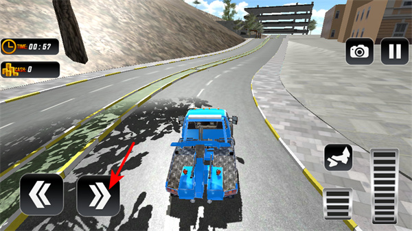 3、在彎道等復(fù)雜路況下,點擊方向按鈕調(diào)整拖車行駛方向,避開道路障礙,保持穩(wěn)定,確保任務(wù)順利推進(jìn)。