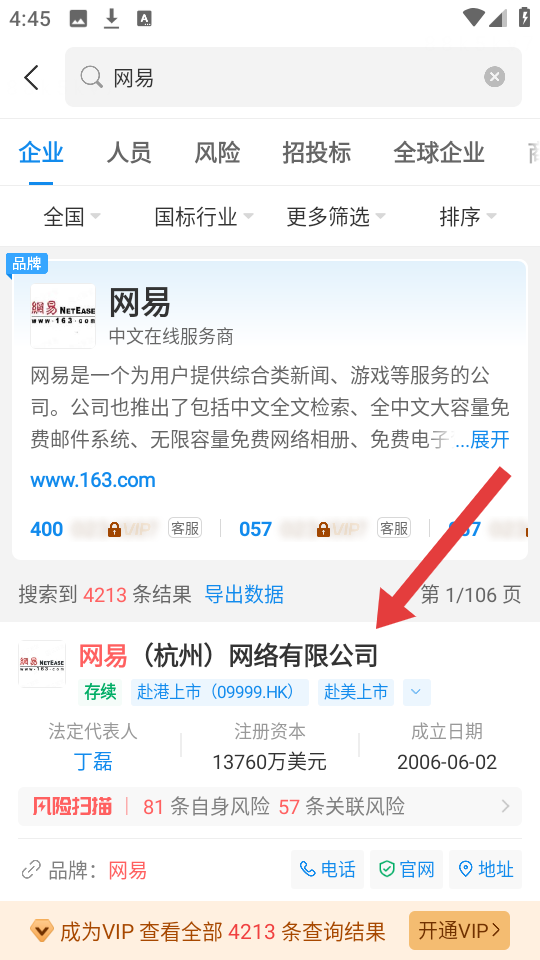 2、在搜索的結(jié)果列表中,找到自己需要搜尋的目標(biāo)企業(yè)條目,然后繼續(xù)點(diǎn)擊進(jìn)入該企業(yè)的詳情頁面。