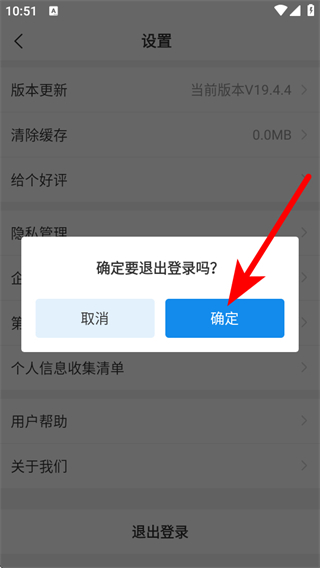 4、在確認(rèn)退出界面,點(diǎn)擊確定的按鈕,即可完成退出登錄操作。