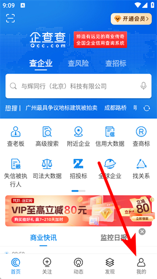 1、打開企查查APP,點(diǎn)擊右下角我的,進(jìn)入個(gè)人的頁面。