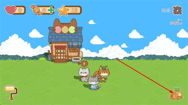 1、點(diǎn)擊界面中的背包圖標(biāo),查看可使用的物品,如家具、種子等。