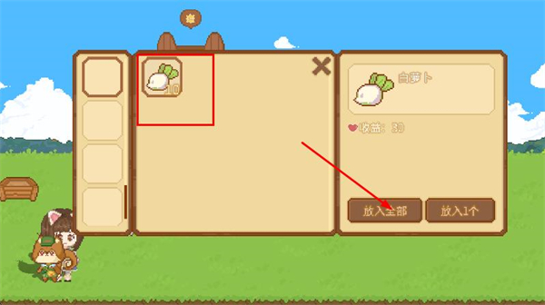 4、收貨的農(nóng)作物,可以選擇上架,出售給小動物,獲得金幣和愛心。