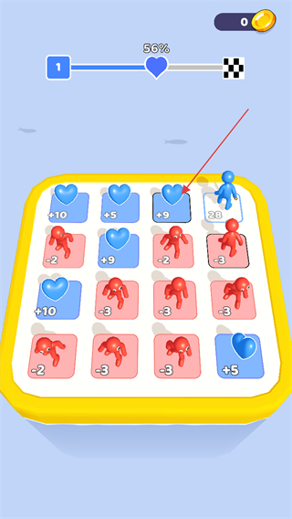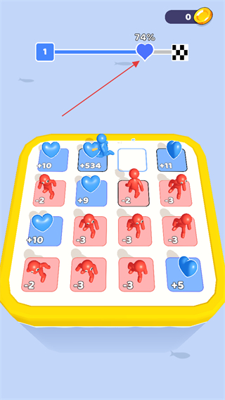 2、選擇藍(lán)色愛心區(qū)域可以收獲相應(yīng)數(shù)量的愛心值,增長上方的進(jìn)度條,當(dāng)進(jìn)度到終點(diǎn)時即為勝利。