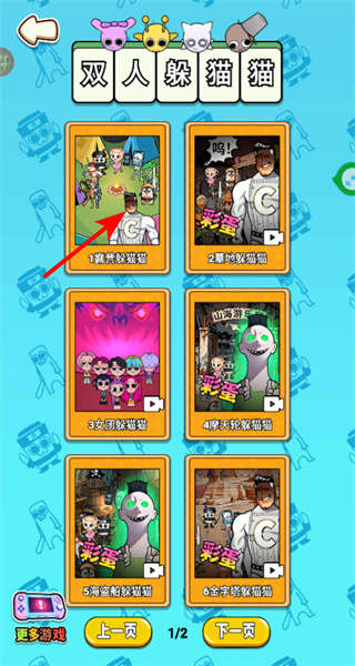 1、進(jìn)入游戲后選擇關(guān)卡卡片,這是開(kāi)啟躲貓貓玩法的關(guān)鍵操作,選擇時(shí)可根據(jù)關(guān)卡主題和難度偏好進(jìn)行挑選。