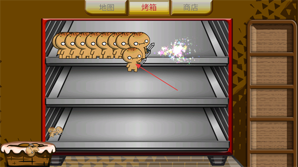 4、完成烘烤后將會(huì)獲得三十個(gè)面包戰(zhàn)士,從右向左滑動(dòng)屏幕將面包戰(zhàn)士收入框子里。