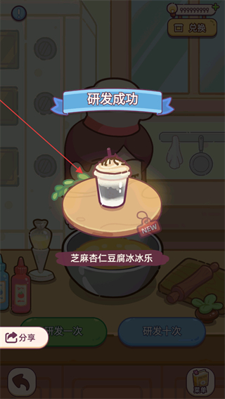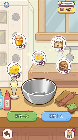 3、點(diǎn)擊研發(fā)一次可以獲取一次菜品研發(fā)機(jī)會(huì),如果材料足夠的情況下也可以進(jìn)行十次研發(fā)。