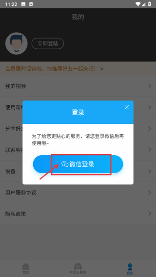 3、在登錄彈窗中,點擊微信登錄選項,進行微信賬號授權登錄操作。