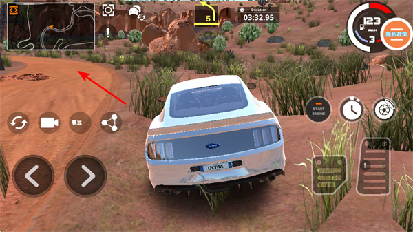 3、點(diǎn)擊左方向按鈕操控車輛左轉(zhuǎn)向,這是調(diào)整行駛方向的關(guān)鍵步驟,左轉(zhuǎn)向時(shí)需根據(jù)彎道和地形準(zhǔn)確操作。