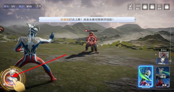 3、點(diǎn)擊頭像釋放終結(jié)技,利用滿能量值的優(yōu)勢(shì),對(duì)怪獸造成巨額傷害,提升終結(jié)怪獸能力。