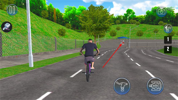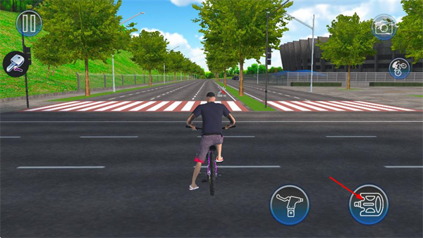 2、在騎行界面,點(diǎn)擊右下角對(duì)應(yīng)按鈕,控制自行車前進(jìn),在道路上行駛。