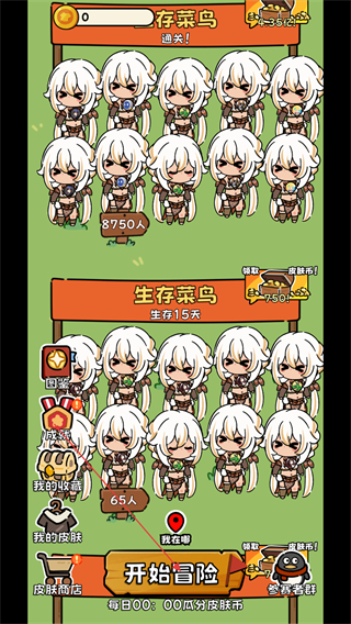 1、打開(kāi)荒野求生模擬器游戲,點(diǎn)擊主頁(yè)下方的開(kāi)始冒險(xiǎn)按鈕進(jìn)入荒野。