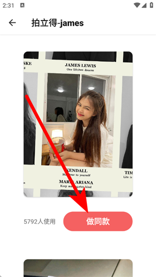 3、在模板詳情頁(yè),點(diǎn)擊做同款,進(jìn)入模板頁(yè)面。