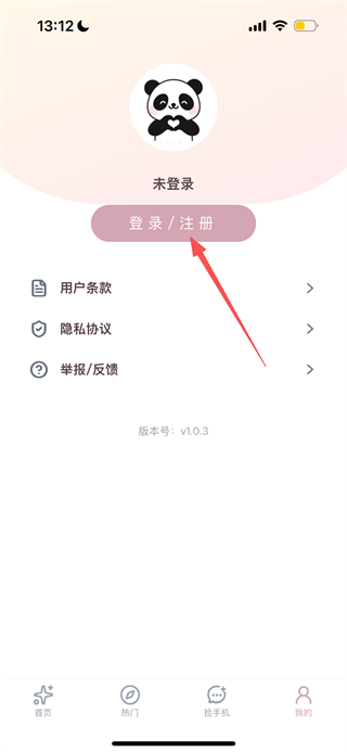 2、在個人中心頁面,點擊登錄注冊按鈕,進入登錄信息填寫頁面。