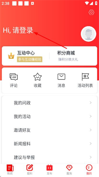 2、在個人中心頁面點擊登錄,進入登錄頁面。
