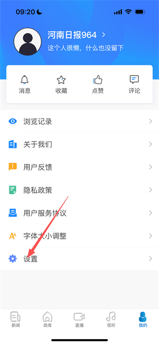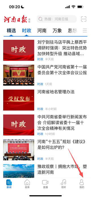 1、在河南日報的首頁,點(diǎn)擊底部的我的選項,進(jìn)入個人中心頁面。