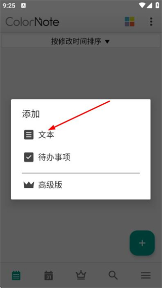 2、在彈出的添加菜單中點(diǎn)擊文本選項(xiàng),進(jìn)入文本便簽的編輯頁面。