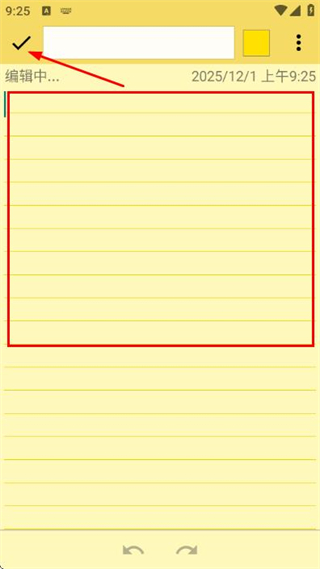 3、在文本便簽編輯頁面的區(qū)域輸入內(nèi)容,點(diǎn)擊左上角勾號(hào)完成該文本添加。