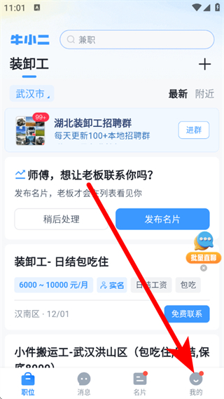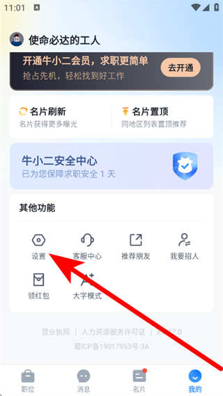 1、打開牛小二招聘網(wǎng),在主界面點擊底部我的,進入個人中心頁面。