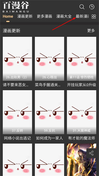 1、在百漫谷首頁,點擊頂部導航欄的最新漫畫,進入最新漫畫列表頁面。