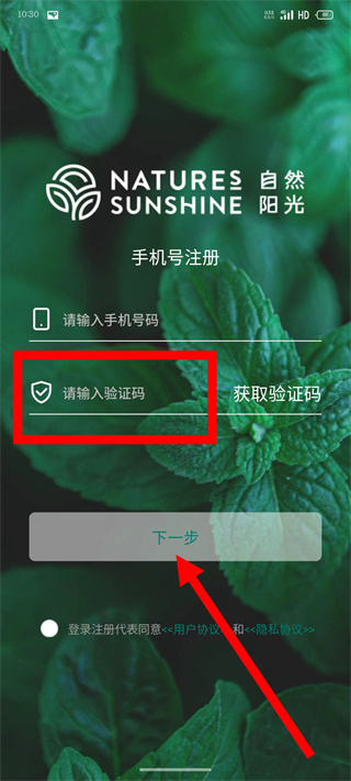 4、在輸入驗證碼框,輸入驗證碼后,勾選協(xié)議后,點擊下一步,完成注冊。