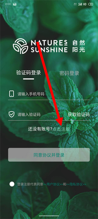 2、在登錄頁面,點擊注冊,進入手機號注冊界面。