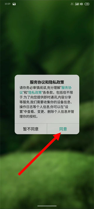 1、打開逆齡派,在服務(wù)協(xié)議和隱私政策彈窗中,點擊同意。