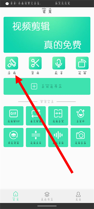 1、打開視頻剪輯制作,在首頁,點(diǎn)擊涂鴉功能。