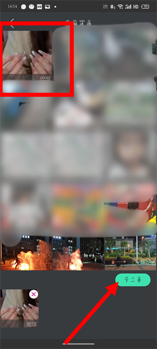 2、在素材選擇頁面,選中目標(biāo)視頻,點(diǎn)擊下一步,進(jìn)入編輯界面。